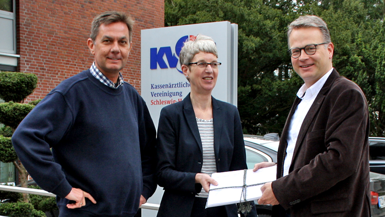 Steinbergkirche: Mit über 1.000 Unterschriften im Gepäck machten sich am 25. April 2018 Mitglieder der CDU-Steinbergkirche/Quern auf den Weg zur Kassenärztlichen Vereinigung Schleswig-Holstein nach Bad Segeberg. Vermittelt hatte den Kontakt der CDU-Landtagsabgeordnete Johannes Callsen.
