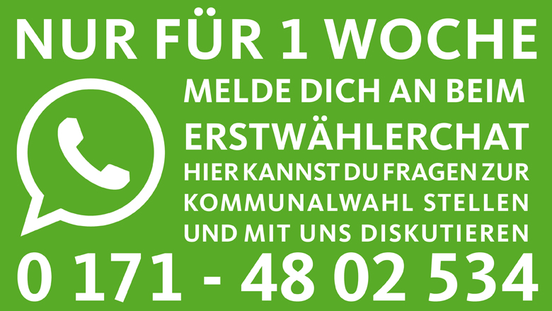 Deine Anmeldung wird von uns anhand der Erstwählerdatei verifiziert, bevor Du in unsere Chatgruppe aufgenommen wirst.